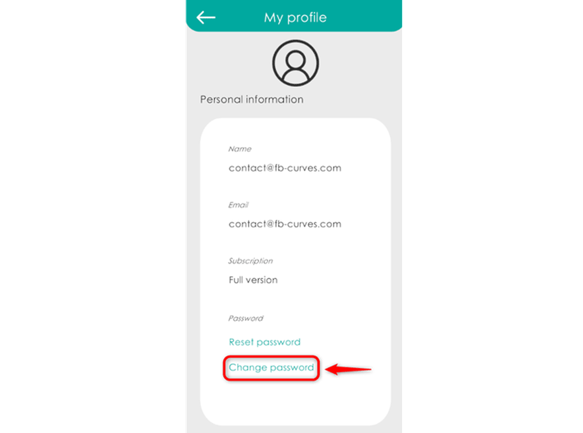 Change your password in the application (this will also update it on our website www.fb-curves.com).