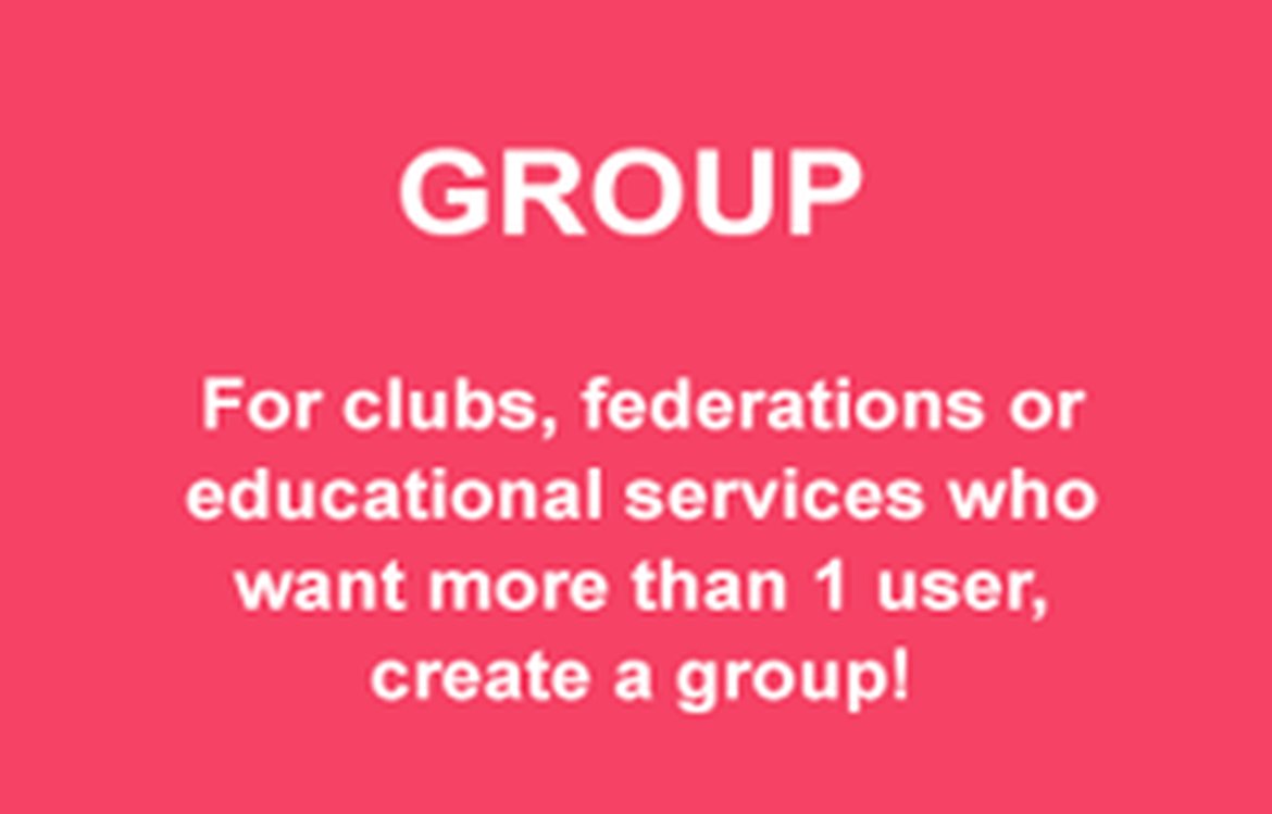 for clubs, federations or educational services who want more than 1 user, create a group!