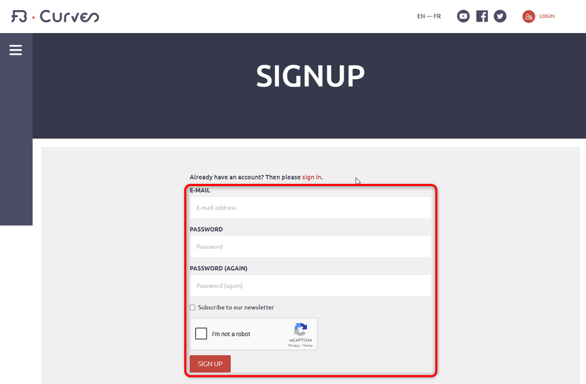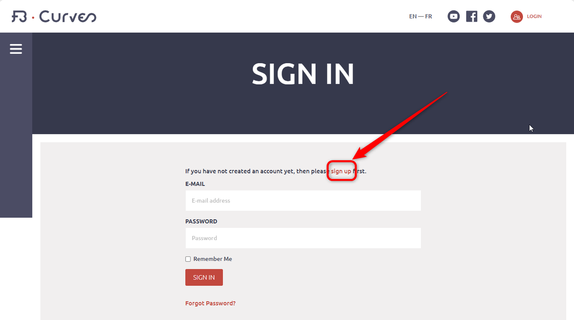 1- Rendez vous sur notre site www.fb-curves.com puis cliquer sur "Se connecter"