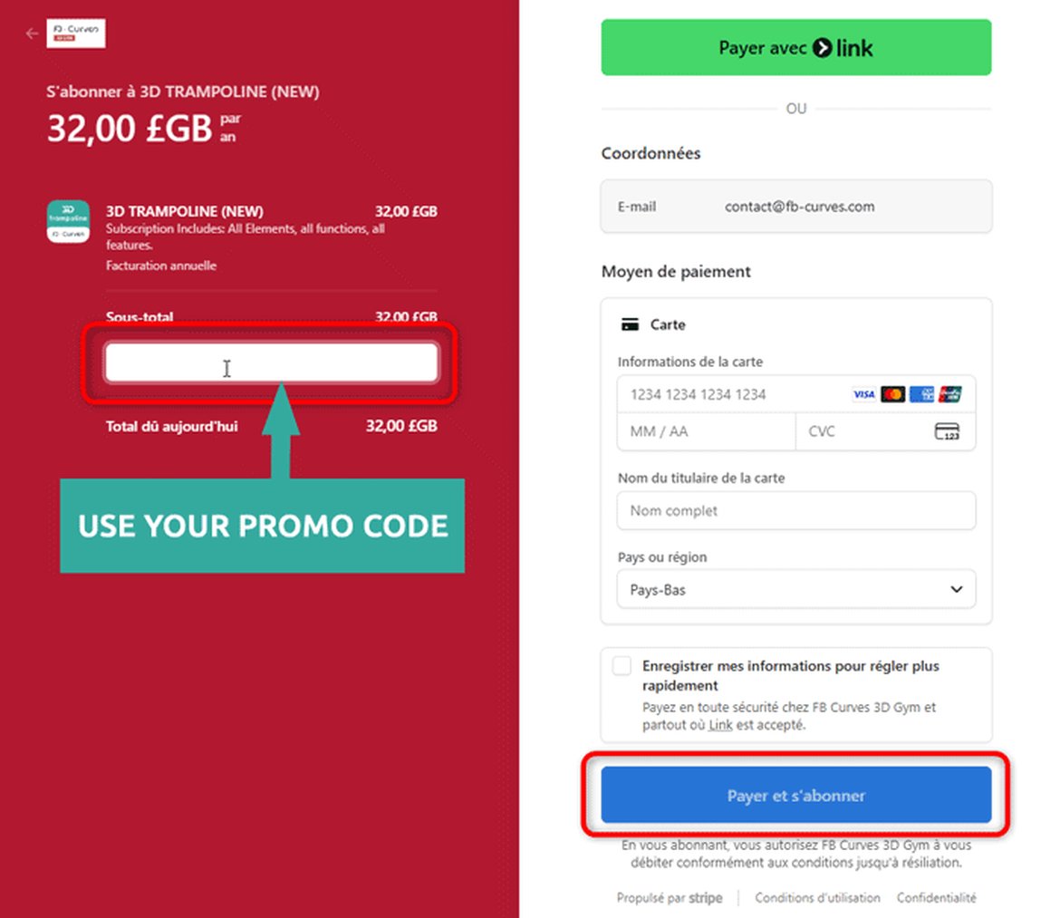 6- Sélectionner votre abonnement et payer via notre système de paiement sécurié "Stripe":