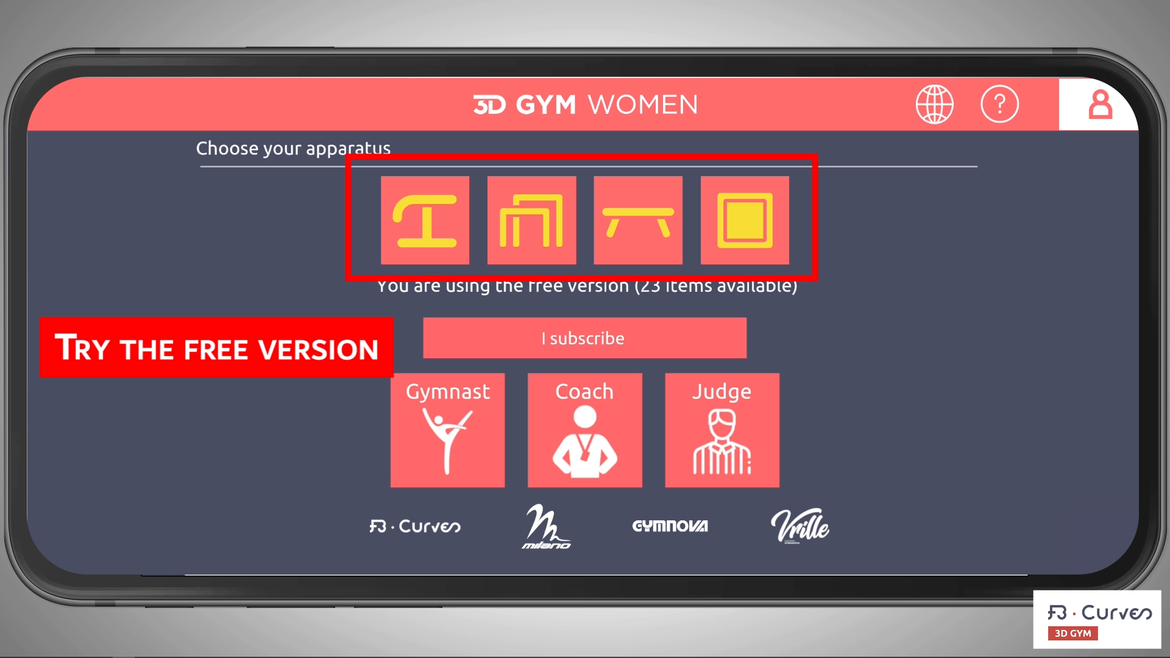 6- Accéder à la version gratuite (60 éléments sur 4 agrès + Quiz + calculette):