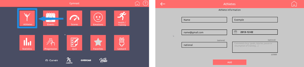 Ajoutez d’abord les gymnastes en renseignant leur fiche d’informations : nom, prénom, date de naissance, catégorie, etc.