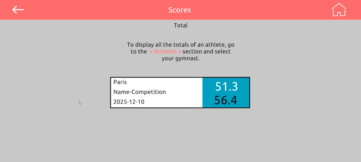 4. Retrouvez tous les scores du gymnaste dans le menu "Athlètes":