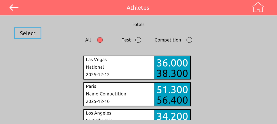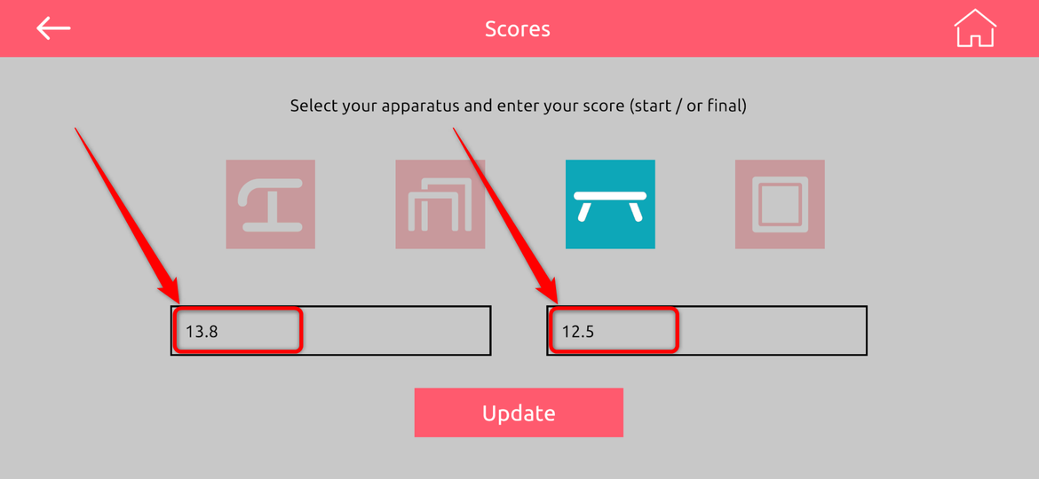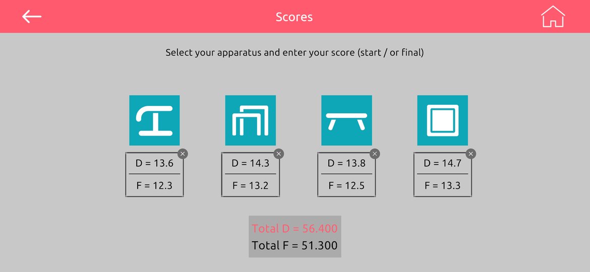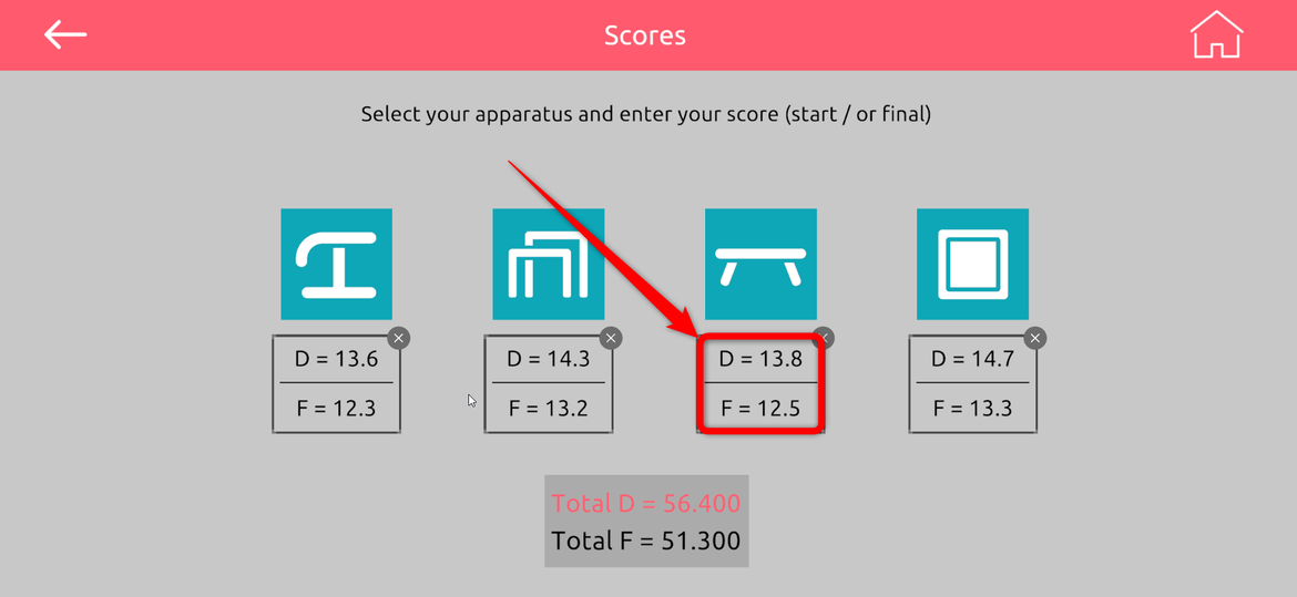 Cliquer sur un total pour afficher toutes les notes par agrès: