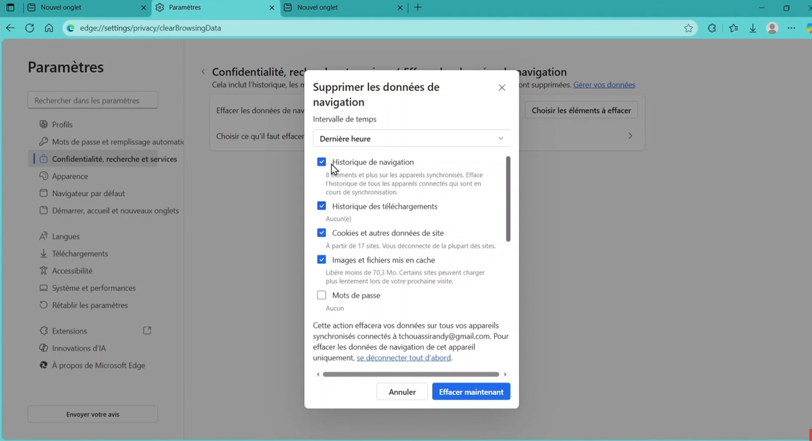 3-Si vous n'avez toujours pas accès à votre abonnement, nettoyer le cache de votre navigateur: