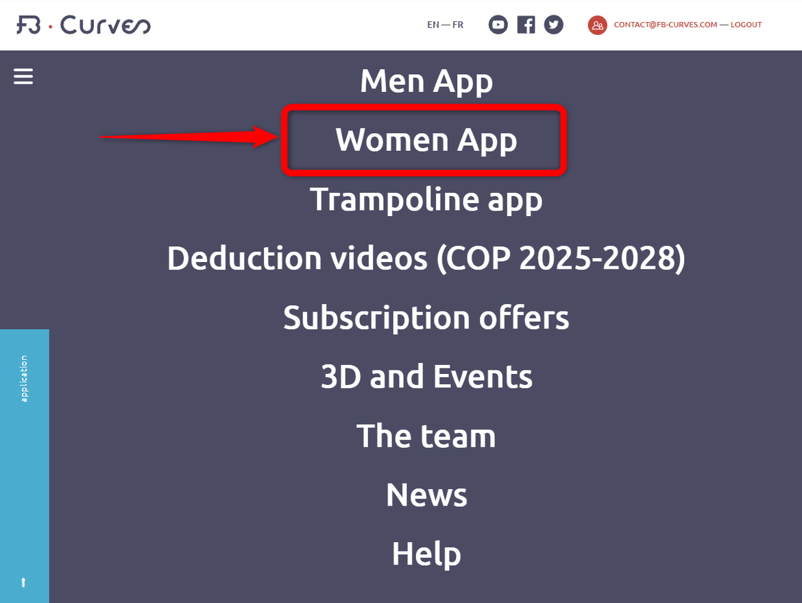Dirigez vous sur l'application Women dans le menu déroulant: