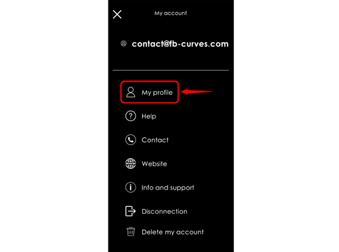 Changer votre mot de passe dans votre application (cela le changera aussi sur notre site www.fb-curves.com ):