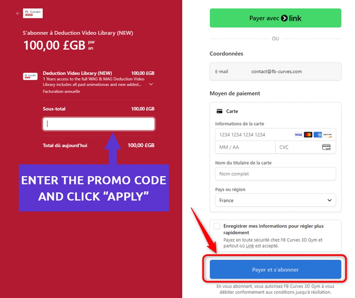 7- Sélectionner votre abonnement et payer via notre système de paiement sécurié "Stripe":
