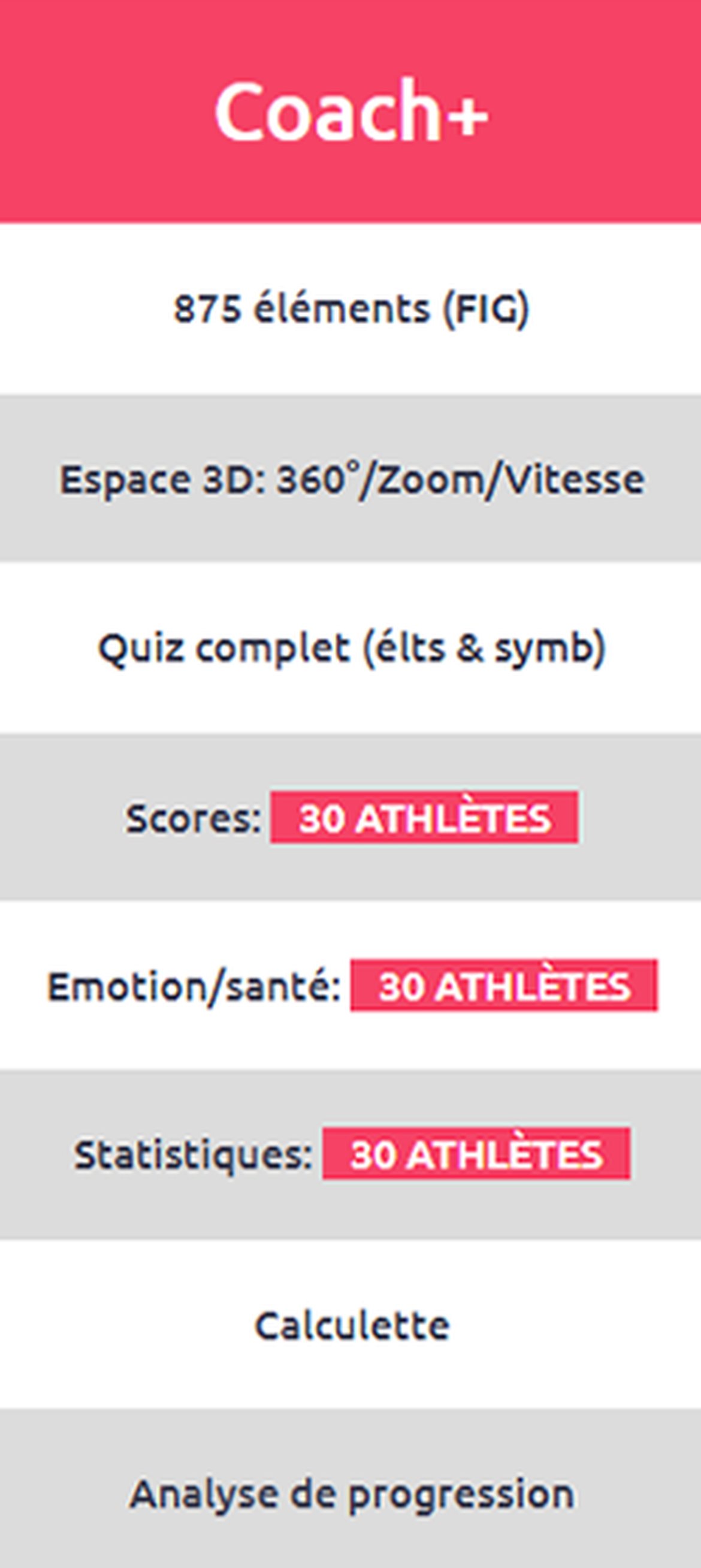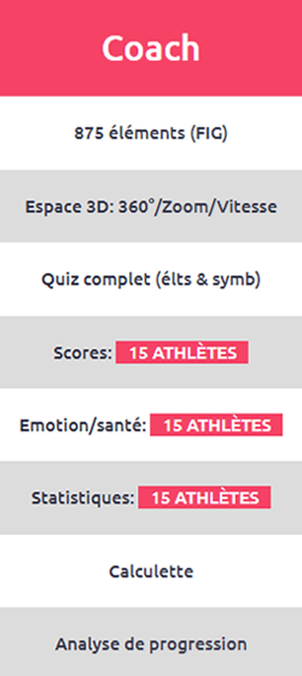 Après chaque entraînement, cette fonctionnalité vous permet de suivre l’état mental et physique du gymnaste.