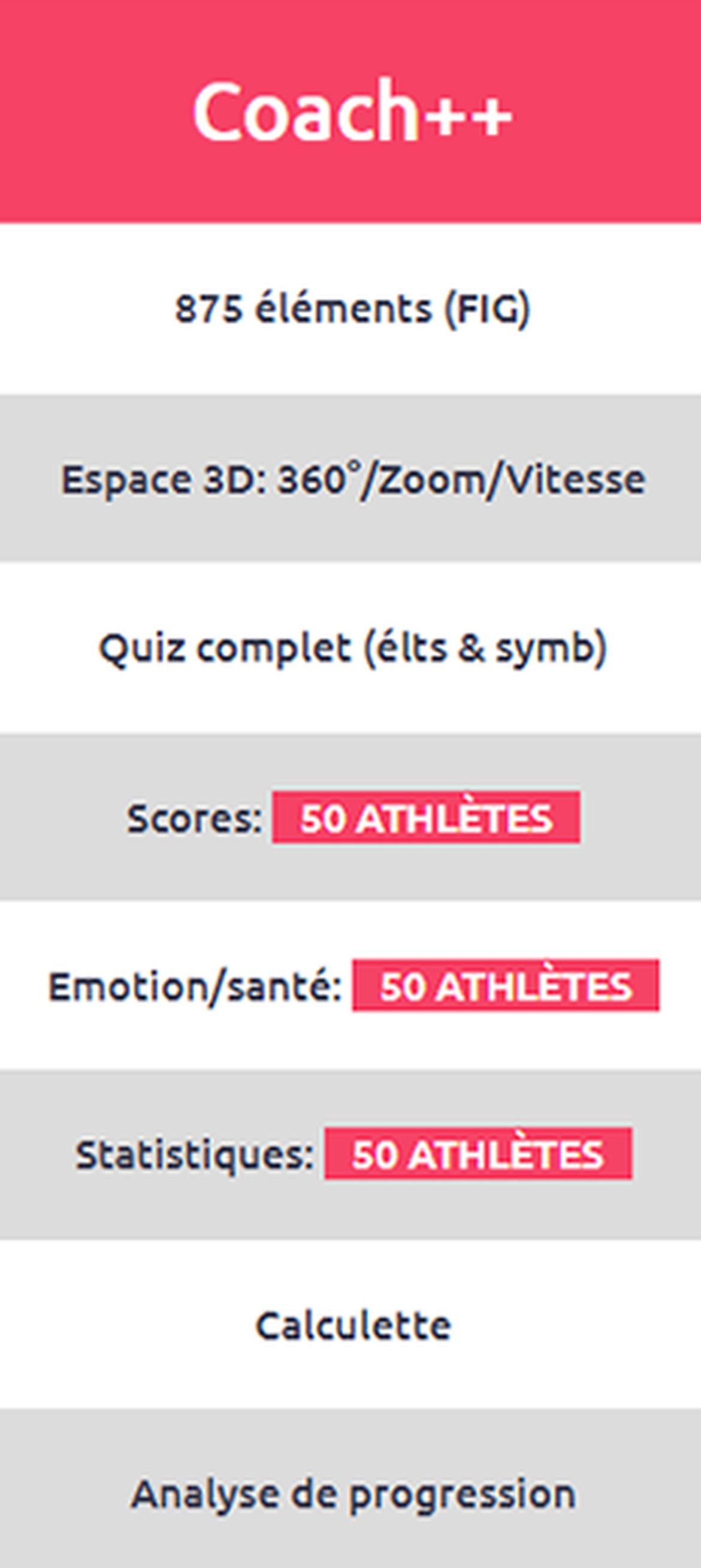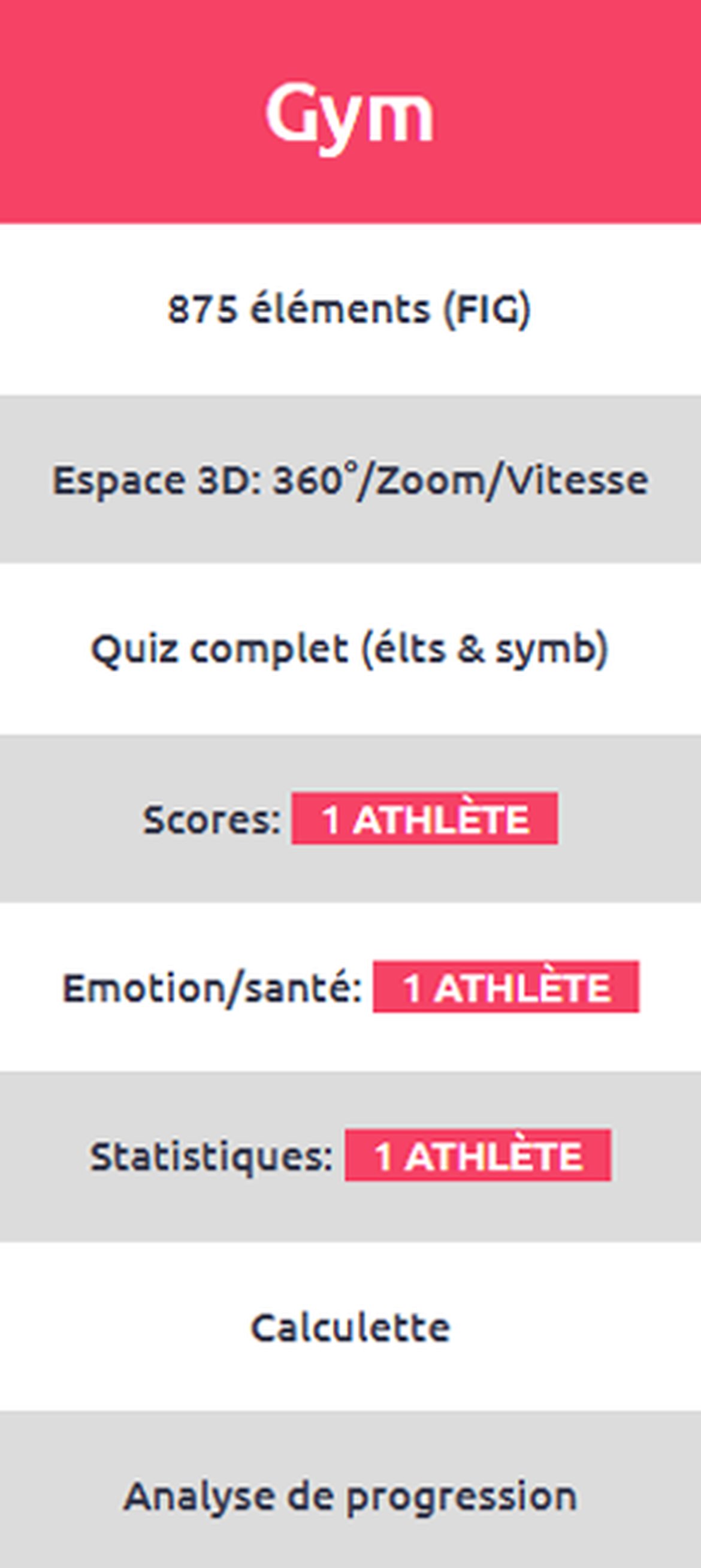 - Centraliser les compétitions, les entraînements et les données du gymnaste