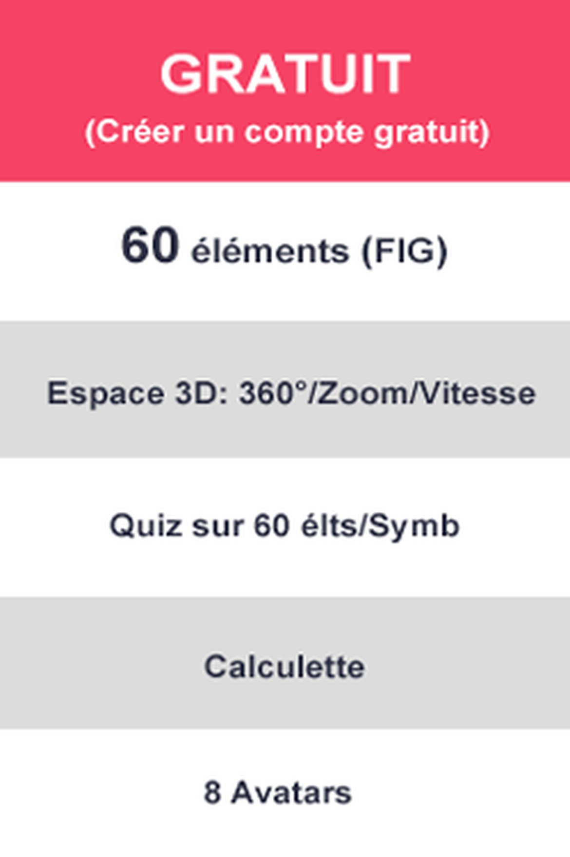 La fonction Quiz vous permet de tester et renforcer vos connaissances sur les groupes et les valeurs des éléments, de manière interactive.